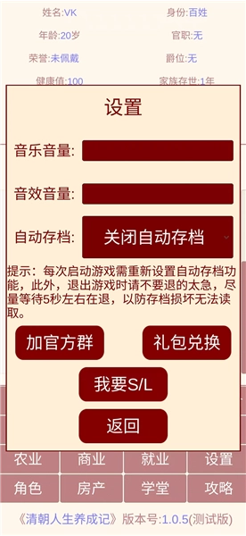 清朝人生养成记版是一款趣味十足的模拟养成游戏,此次为大家带来的是经过专门修改的版本。玩家无需观看大量广告,就能直接获取所需物品,助力达成目标!在这个版本中,有丰富的身份可供选择,不过需要玩家自行努力升职、寻找工作。你可以出生在富贵之家,也能从平民百姓起步,通过不断逆袭,最终成为一代帝王。