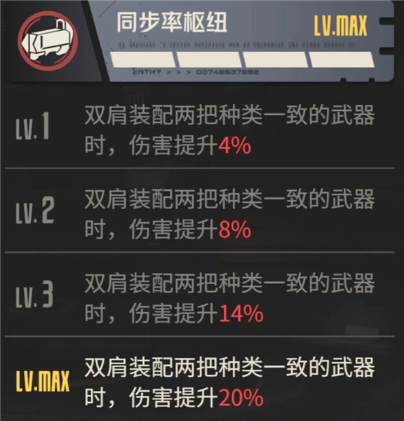接着日弩的模组算是中规中矩的评级,20%的稳定增伤在当前版本看来已经并不算高了,而双肩装配同类型武器的泛用性其实也没有非常之高,大部分依然是用于其它的战术机兵中,比如伊格尼特或者马尔萨斯身上,并且有时其也不能算第一优先级的模组选择,所以整体上而言日弩当前的价值相对有限,并不适合这个自选UP池。