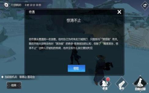4、完成挂机地点中的事件,获取江湖影响力提升组织等级。