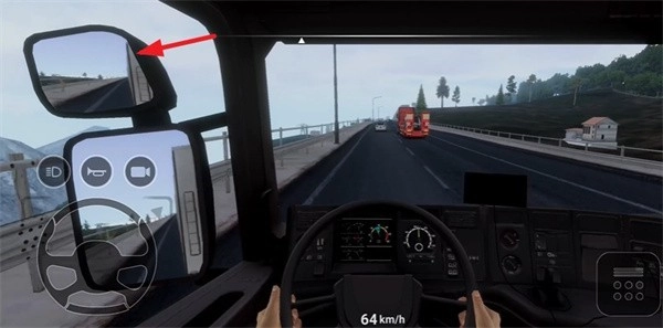 5、左上角的后视镜功能可随时呈现后方车况,帮你避开突然靠近的车辆干扰。