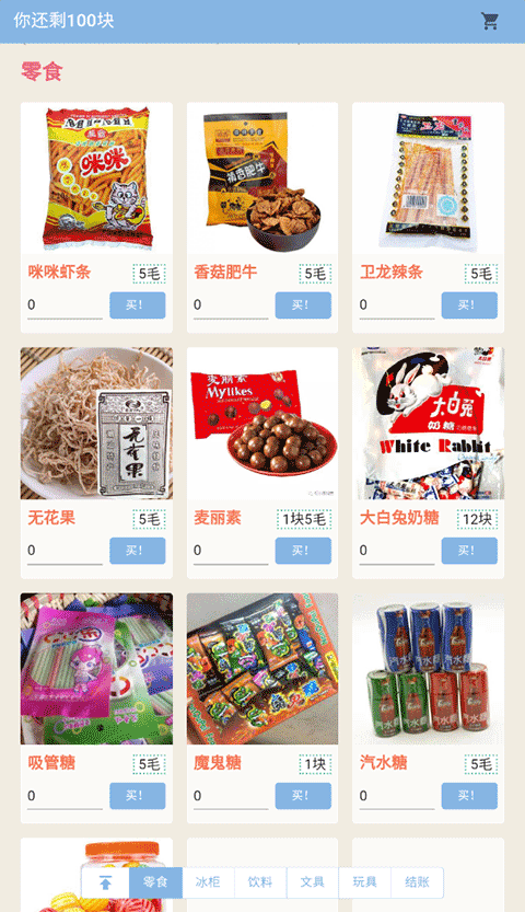 小时候总觉得零花钱不够用,想买的好吃的都买不起,在这里,你能拥有一百块零花钱,把所有想吃的都买回家!