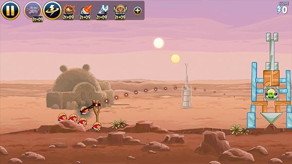 每一关的小鸟都已固定,玩家需要尽可能利用这些小鸟去射击绿猪。