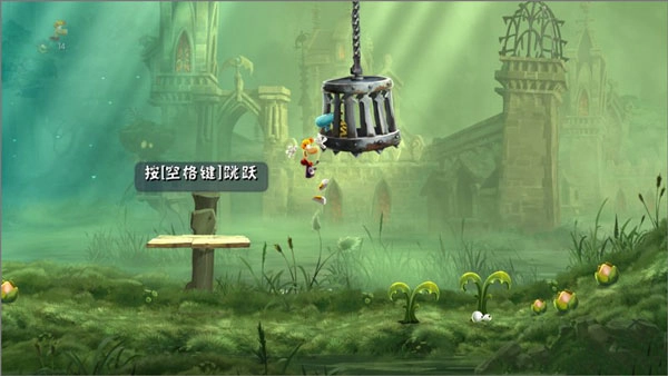 3、来回摆动绳子并在最高点跳出攻击牢笼可以解救精灵。