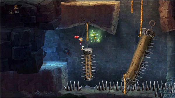 4、这里要先跳在空中解救了精灵再切断绳索。