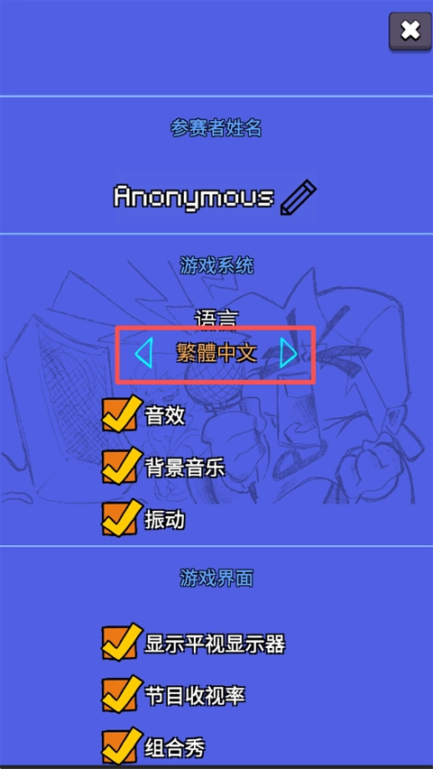 2、在"LANGUAGU"中点击下方的三角图标进行切换语言;