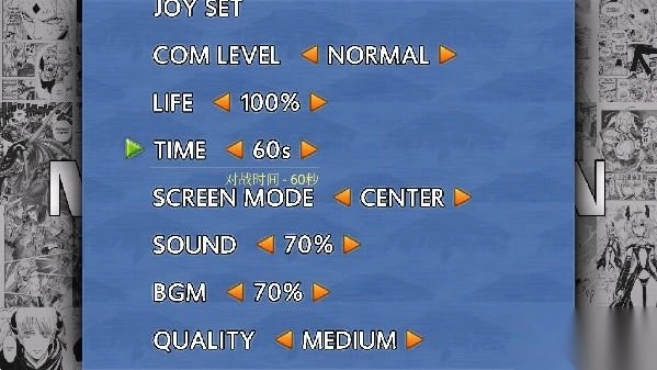 2、其中我们可对内的对战时间、血量、操作方式等各项内容进行自定义的设置。