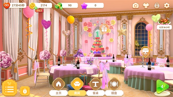 5、点击房间即可对当前房间进行各种装扮,包括蛋糕以及各种设施的摆放与选择。