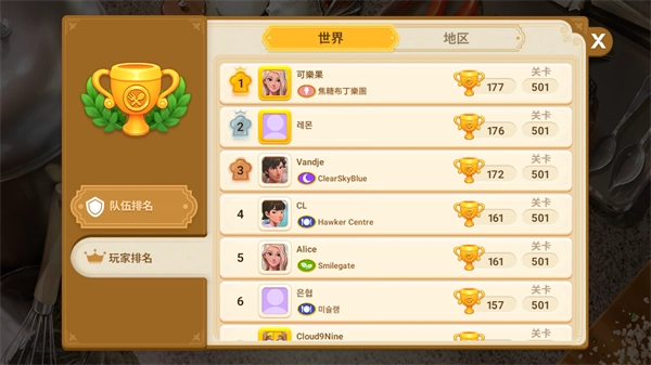 9、整个过程并不是枯燥的,你还可以查看排名,无论是世界的还是地区,内都可以统统查看,一起来竞赛吧!
