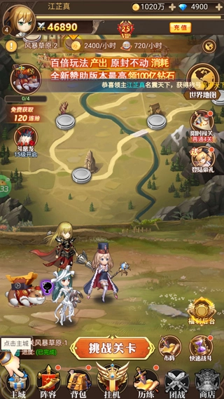 2、随后设置一个昵称进入游戏,该版本上线即赠送专服特权,帮助玩家获得强力角色。