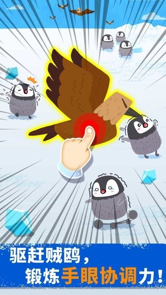企鹅爸爸在专心孵蛋,企鹅妈妈则出门去捕食鲜美的鳞虾啦!小朋友们快动起小手,帮助企鹅妈妈抓住鳞虾。不过要留意身后可能出现的虎鲸和海豹哦!