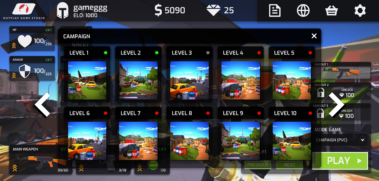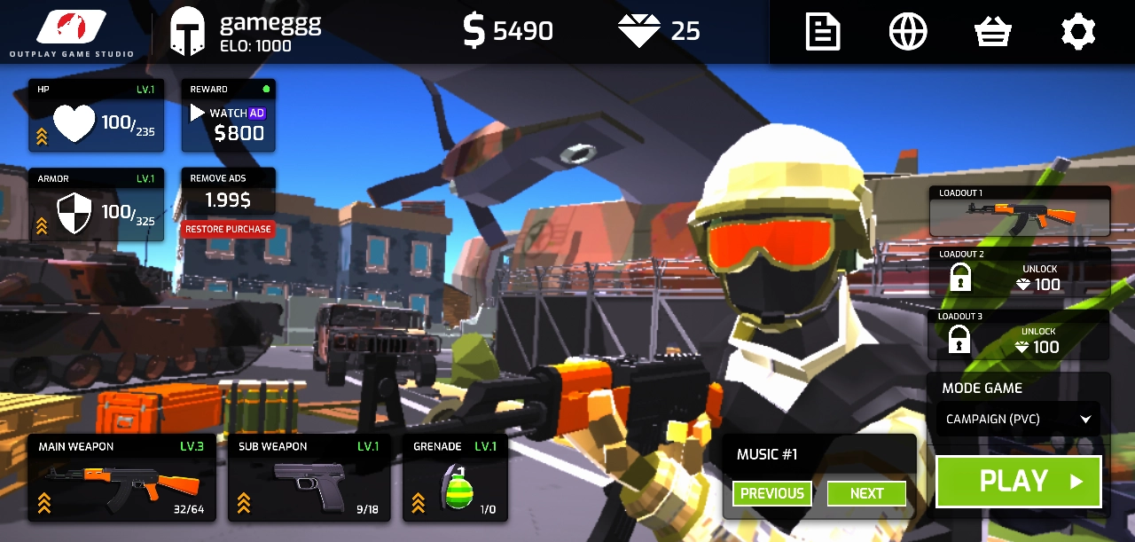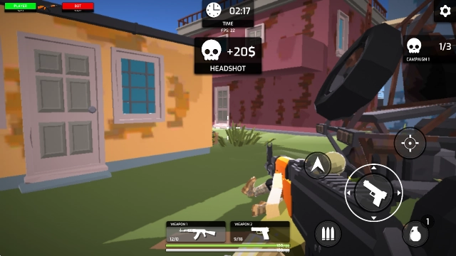 1、22种不同武器可以自由的解锁搭配,包括手枪、狙击枪、霰弹枪、手榴弹、闪光弹等等,帮助你更好的战斗。