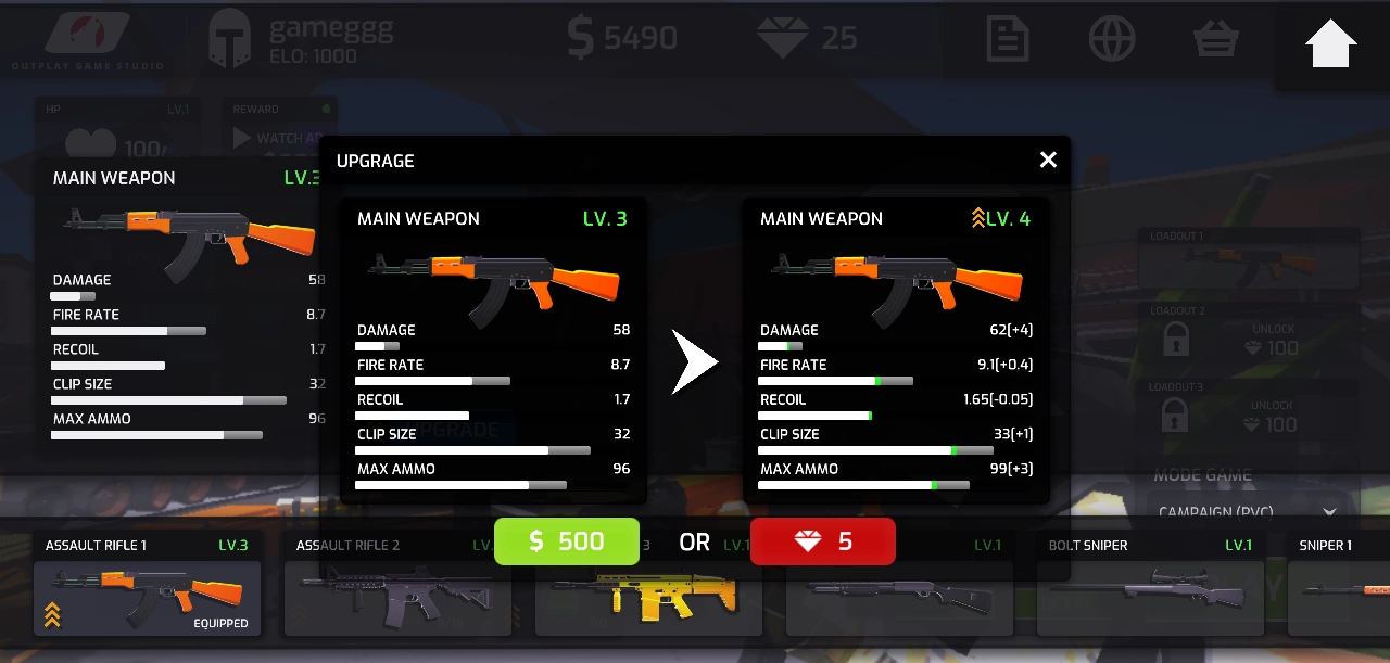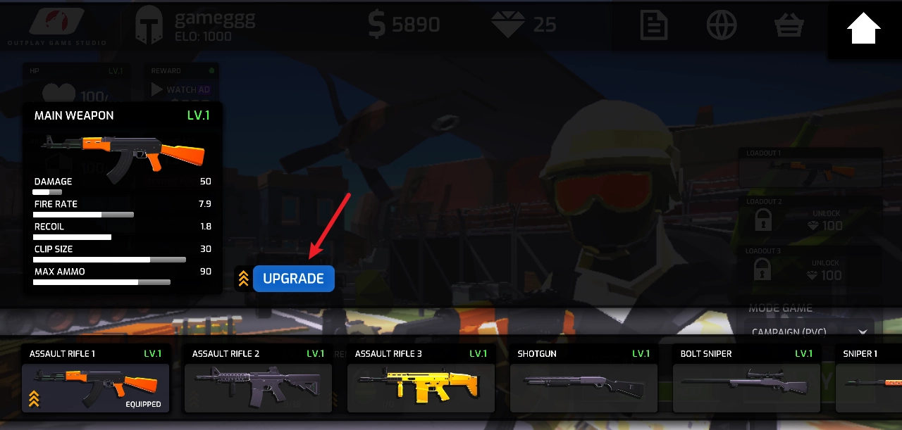 1、在主界面点击下方的武器选项,选择对应的武器类型就能完成更换。
