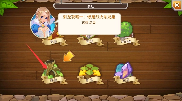 1、进入后点击商店按钮进入购买界面,浏览各类龙巢与培育设施选项。