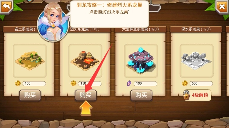 3、点击购买选定的龙巢并确认支付,消耗相应数量的金币或钻石完成交易。