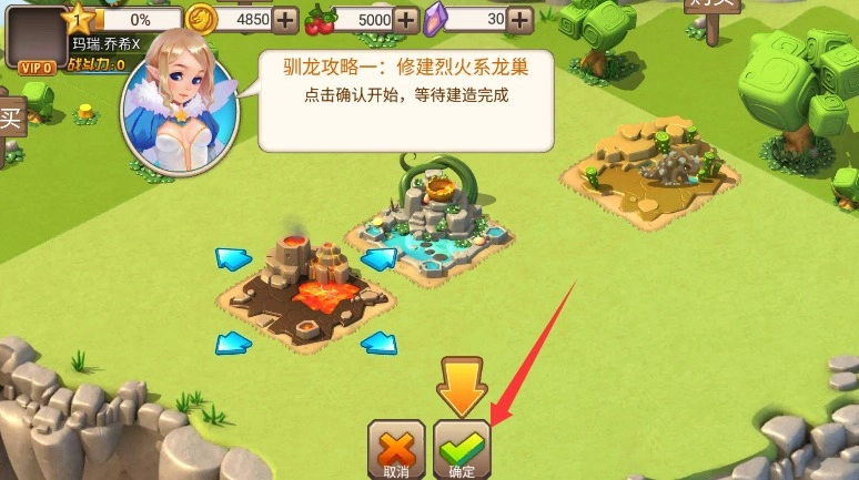 4、返回牧场选择空地修建龙巢,点击确认后等待完成建造购买龙蛋进行培育即可。