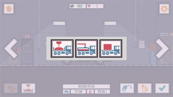 1、进入后,在主界面点击左右箭头即可切换卡车,而卡车的解锁需要消耗金币。