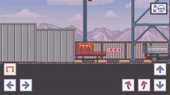 6、到达装载货物的地点后需要点击右上角的按钮来操控机械臂,点击箭头可以控制机械臂移动,操控机械臂将货物装载到卡车上。