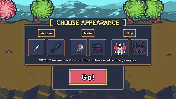 1、先打开应用或程序,挑选初始装备——可以从武器、角色、飞船里选择自己喜欢的,之后就可以开始游戏了。