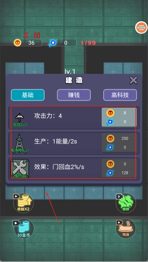 4、完成界面中的任务可以获得大量金币,用于升级武器和门锁,提升防御力。