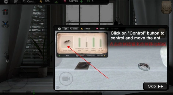 6、点击控制按钮可以用来控制蚂蚁。