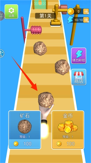 3、途中随机出现打磨工具,获取后背包内矿石自动提升纯度等级。