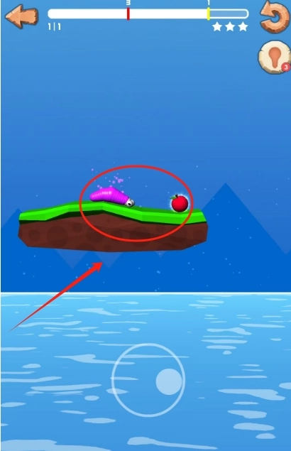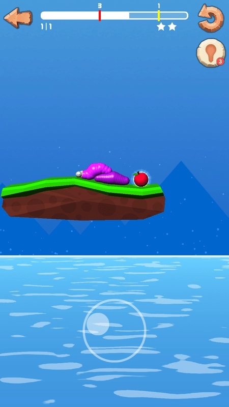 2、根据苹果方向移动,要精准控制鼻涕虫伸缩爬行,稍不注意就会摔得黏糊糊的,关卡设计超有创意。