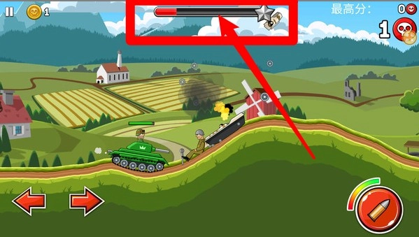 1.画面上方显示血量与进度条,玩家需要时刻关注坦克状态,确保在战斗中坚持到底完成对敌作战任务。