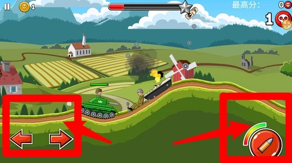 3.左下角是方向控制键,右下角是射击按钮,玩家需要灵活操控移动和攻击,才能在战场上充分发挥坦克的最大优势。