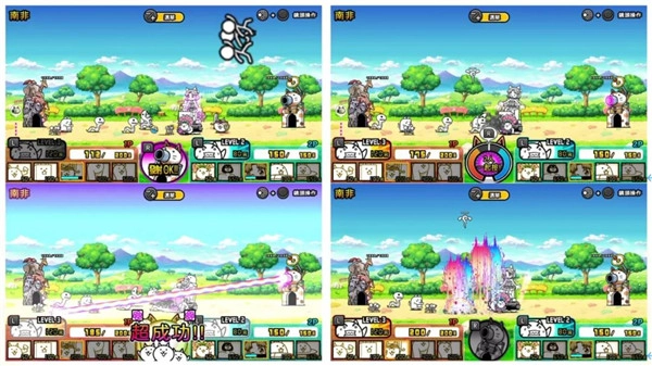 将画面左下角的“土豪猫”增值,即可加速累积金钱的速度并增加战斗中可持有的金钱。使用画面右下角的“猫咪炮”则是可以一口气攻击敌人并推进战线,不过发射“猫咪炮”前需要一段时间充电。