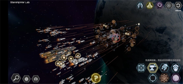 5、点击你要释放的技能,再点击舰队里的某个舰,就可以攻击。你所点击的舰队为被攻击舰队。