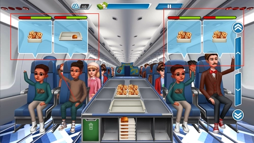 1、模拟飞机厨房环境,玩家需在飞行途中为乘客提供餐饮服务,根据订单提示选择正确食材进行加工与装盘。