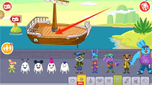 3、从屏幕下方的小动物队列中挑选一位作为船长,被选中的角色会戴上水手帽登上驾驶位。