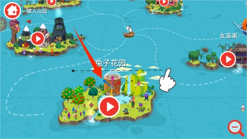 1、轻触起始箭头进入后,画面会呈现一幅手绘风格的花园地图,同时伴有欢快的背景音乐。
