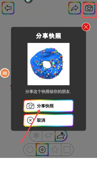 3、完成制作后,点击右上角的相机图标,点击【分享快照】即可将作品分享给朋友。