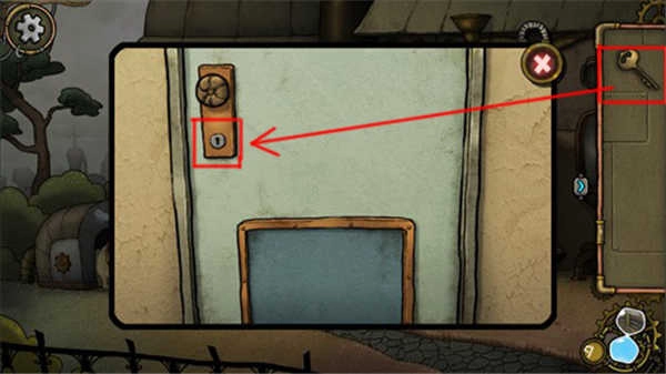 3、然后点击道具栏中的钥匙,再点击大门锁,就能打开大门。
