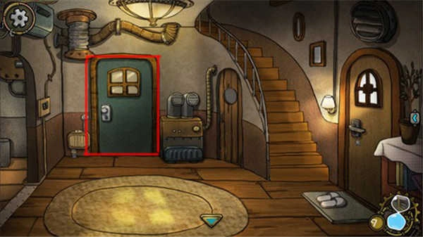 18、然后我们返回大厅,点击二楼楼梯仅能上二楼。点击右侧的门,就可以打开门。