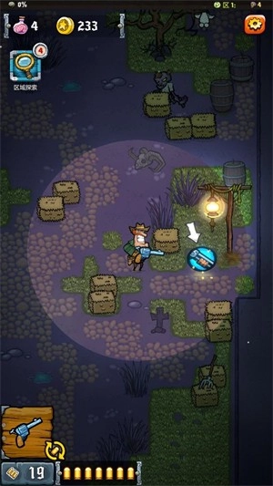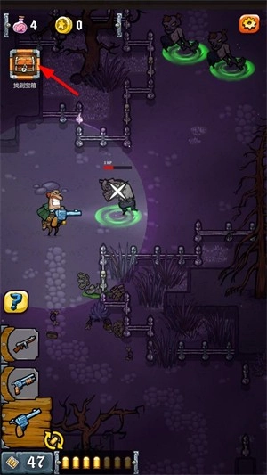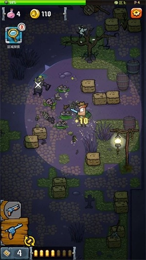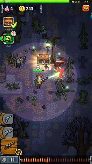 2、进入关卡后滑动屏幕来控制角色移动,角色遇到僵尸会自动开枪攻击。