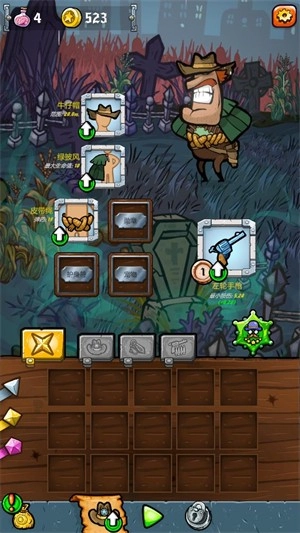 6、在主界面点击下方的帽子图标即可进入装备界面,在这里可以消耗金币对武器和装备进行升级操作。