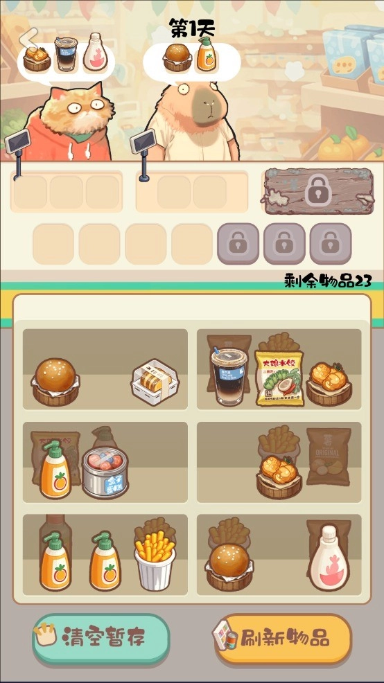 2、玩家爱需要及时关注货架上商品的情况,出现没货的情况,及时补充商品。
