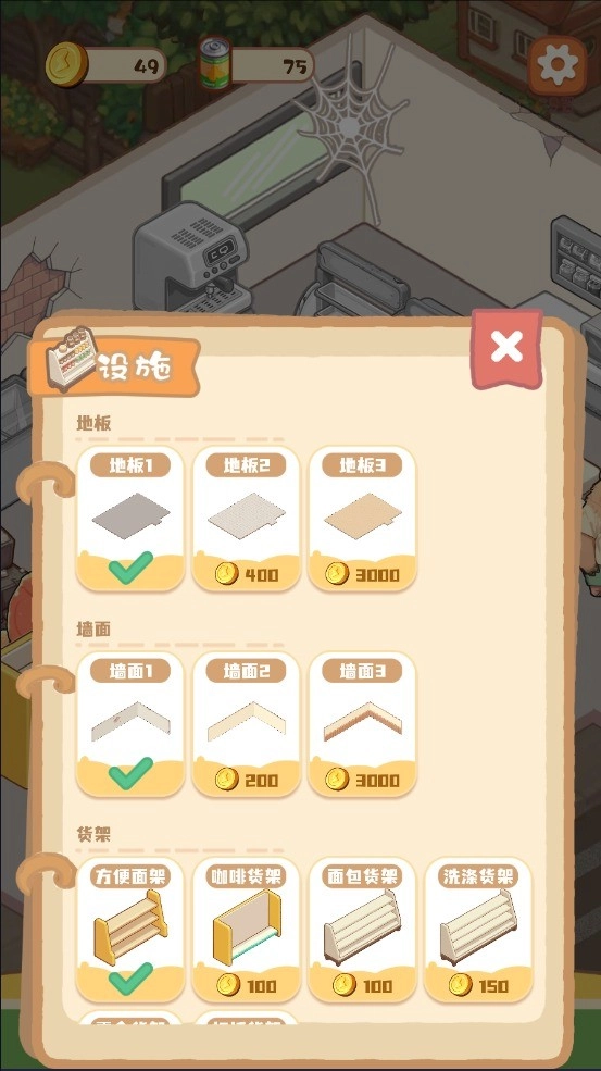 3、消耗金币解锁更多设施来辅助经营,如此便能接待更多顾客、提升收入,让超市焕然一新