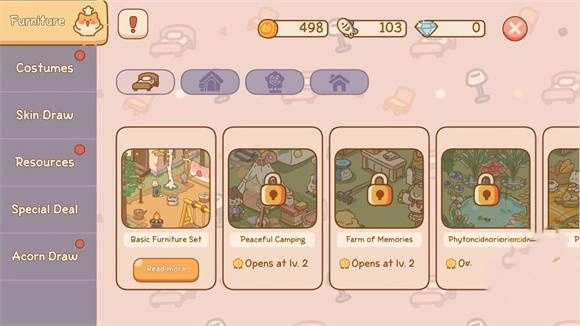1、玩家可在经营过程中获取金币和钻石,还有小鱼干,用来兑换有用的道具。