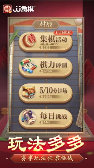 棋力评测、华山论剑、5分钟场、10分钟场,多种对弈模式任你挑选,精彩有趣、随时开局。