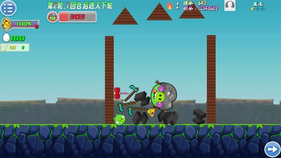 1、up主自制的愤怒的小鸟同人小,玩法简单但是加入了全新的技能元素,充满了肉鸽的味道。