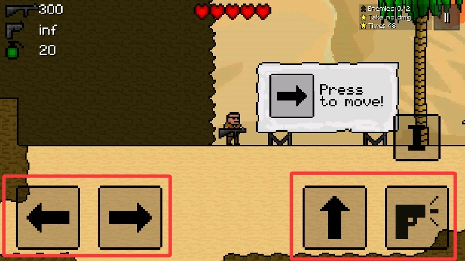 4、实战中通过左侧虚拟区域滑动控制移动方向,右侧分别设置跳跃键与射击键完成战术动作。