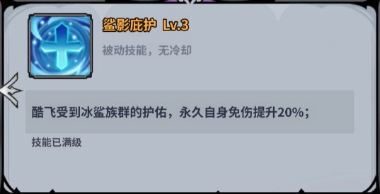 酷飞收到冰鲨族群的护佑,永久自身免伤提升20%