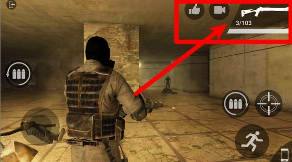 1.右上角显示武器与弹药信息,白条为装弹进度,数字为当前弹量与总储备,随时关注避免空仓,关键时刻别断火。