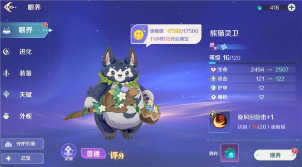 通过喂养守护者,可以提高其饱腹感与战斗能力,在增进感情的同时让守护者变得更加强大!