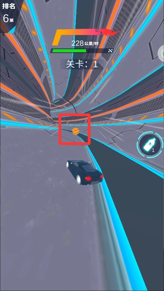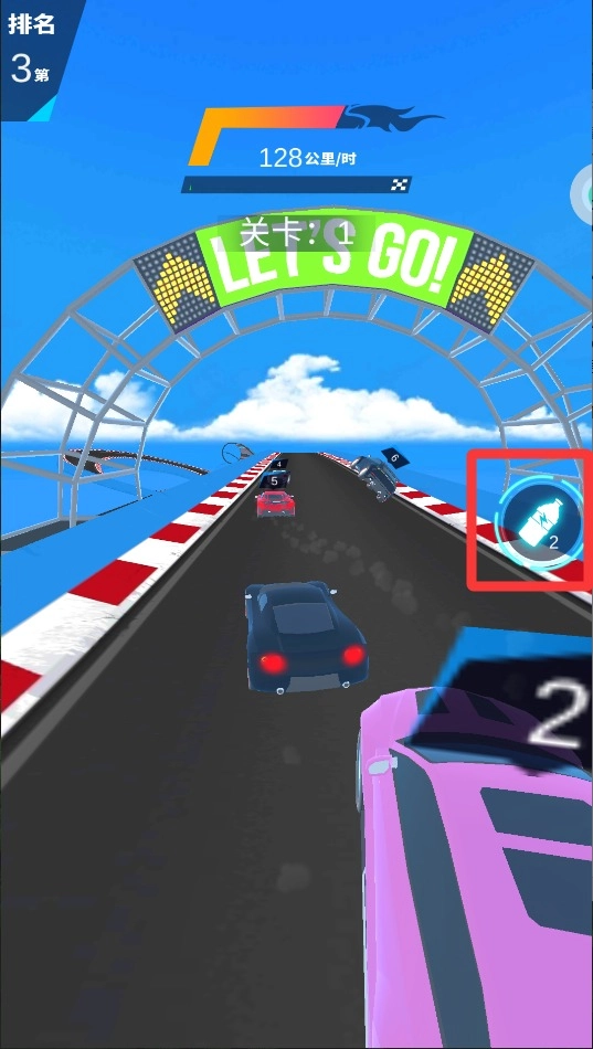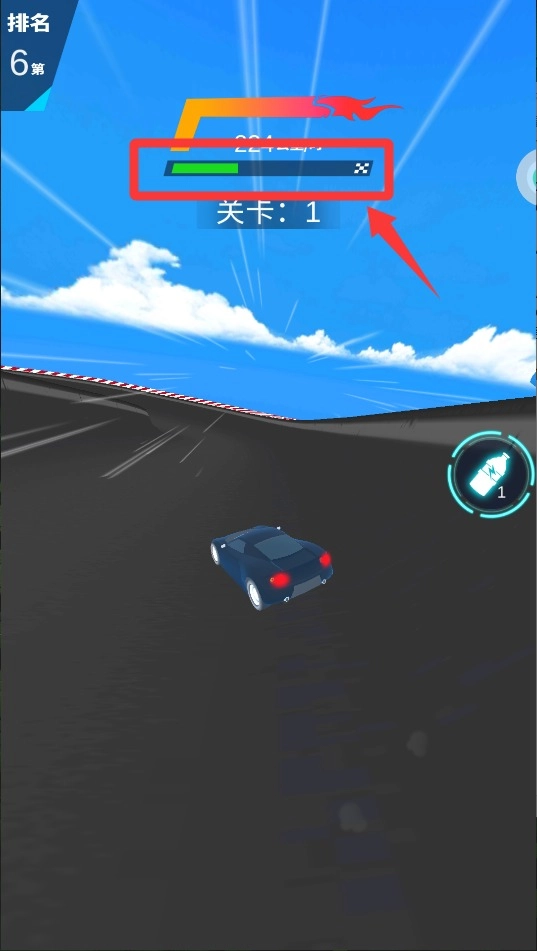 2、看到氮气按钮就点,能瞬间提速超车,不过氮气有限省着用,最好在直道上开,弯道容易翻车。