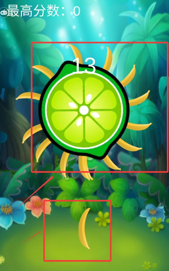 2、用下方的武器射中上方的水果即可。