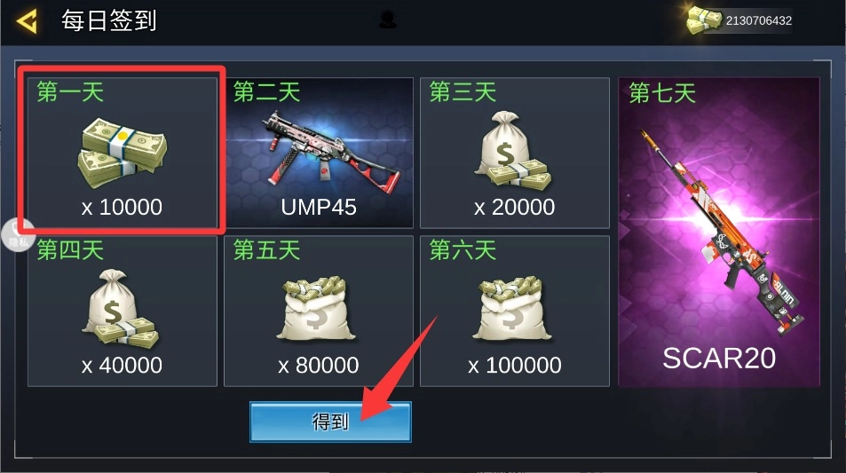 1、每天登录都能领取金币奖励,等积攒够了资金,就可以去商店购买强力武器和特殊弹药来提升自己的战斗力。